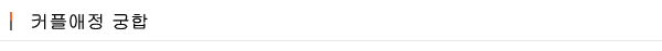 커플애정 궁합은 자신과 상대의 혼인운에 대한 전반적인 분석을 통해 두 사람의 애정 커플의 궁합을 살피는 것입니다. 두 사람이 만나 연애하는 과정과 두 사람이 결혼한 상황도 자세하게 분석하며 아울러 상대에 대한 공략법도 알아봅니다. |