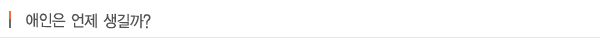 길을 가다가 주위를 보면 남녀가 팔짱을 끼고 걸어가는 모습을 보고 속이 타신 적이 있습니까? 길가에 울려 퍼지는 사랑 노래에 가슴시려 보신 적이 있습니까? 이 지겨운 솔로의 생활! 이제는 벗어나고 싶은 분을 위한 어드바이스! 현재의 애정운을 총 점검 해보고, 언제 애인이 생기는 가를 짚어 드립니다. 자! 솔로 탈출을 한번 시도해 볼까요? |